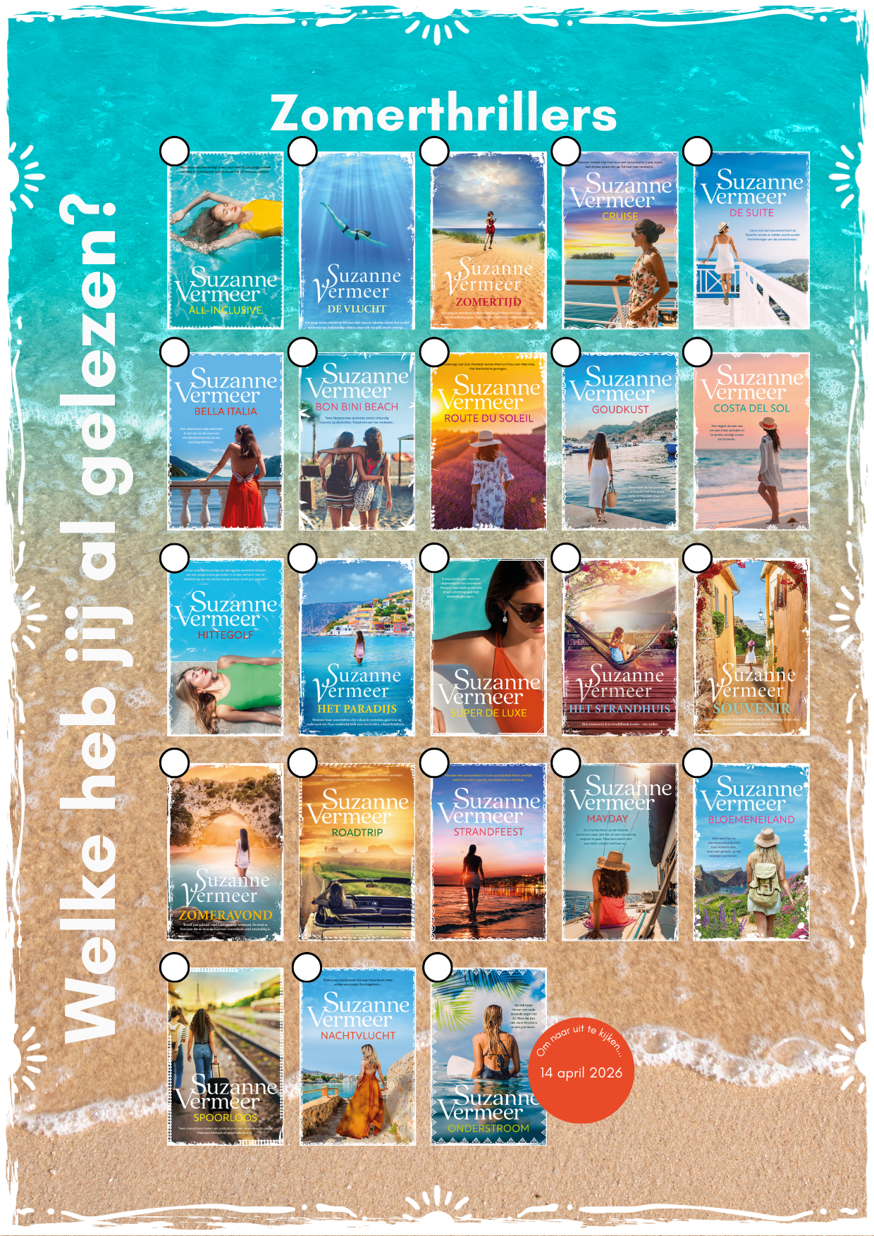 De Suzanne Vermeer-vakantiethrillers allemaal uit of gewoon even toe aan…
